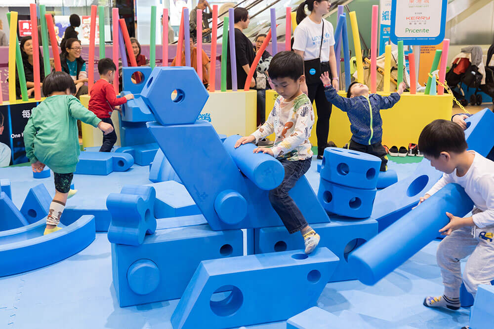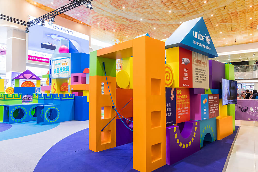 In support of Unicef ’s initiatives to educate the public about the importance of ‘ Eat . Play . Love’ in early childhood development, Oval designed and produced installations under the theme – ‘for every child, #EatPlayLove’. We focused on the idea of ‘free play’ that developed innovative and interactive play systems that would allow children to create and experience. An ‘ Imagination Playground’ with two play zones for different age groups of kids was designed to exercise creativity. Children were encouraged to build their own toys by playing together with other kids. There was also a “CREATIVE PLAY@HOME” area placing inexpensive and simple props at home such as toilet paper rolls and cooking utensils which transformed to creative toys that ignitedchildren’s imagination to play at home. Parents could observe their children’s behaviors during the play session and joined specific workshops in which they could learn to make their own creative toys with their kids.