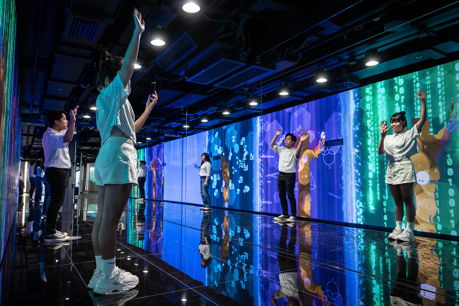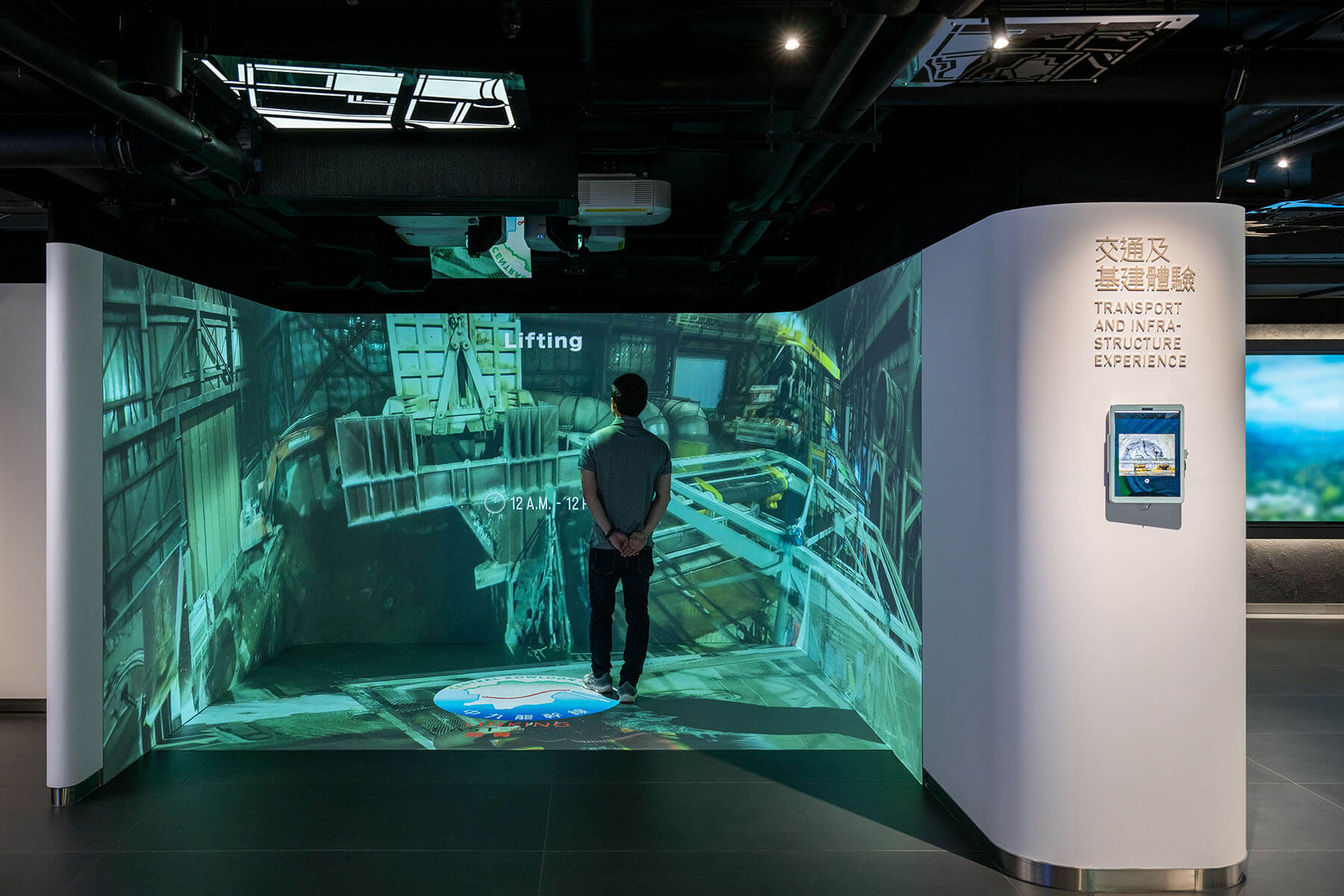 The immersive CAVE projection allows visitors to experience details of transportation and infrastructure in HongKong. Through interactive and visual effects, these interactive exhibits make complex projects more accessible and engaging.