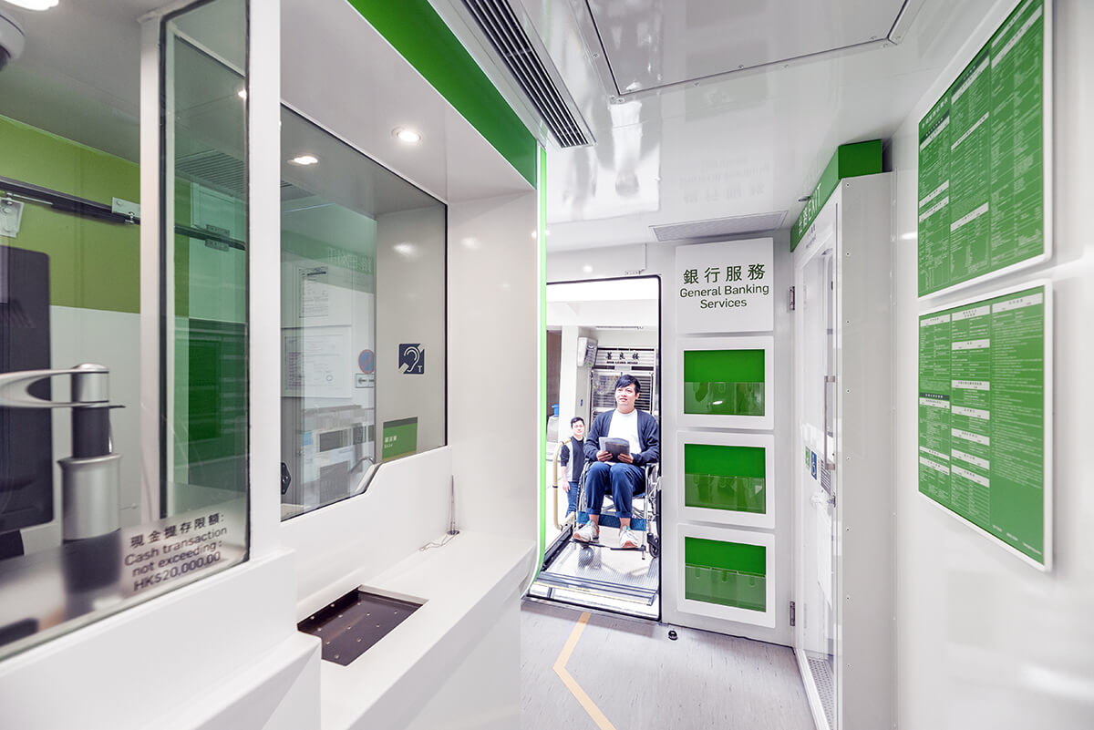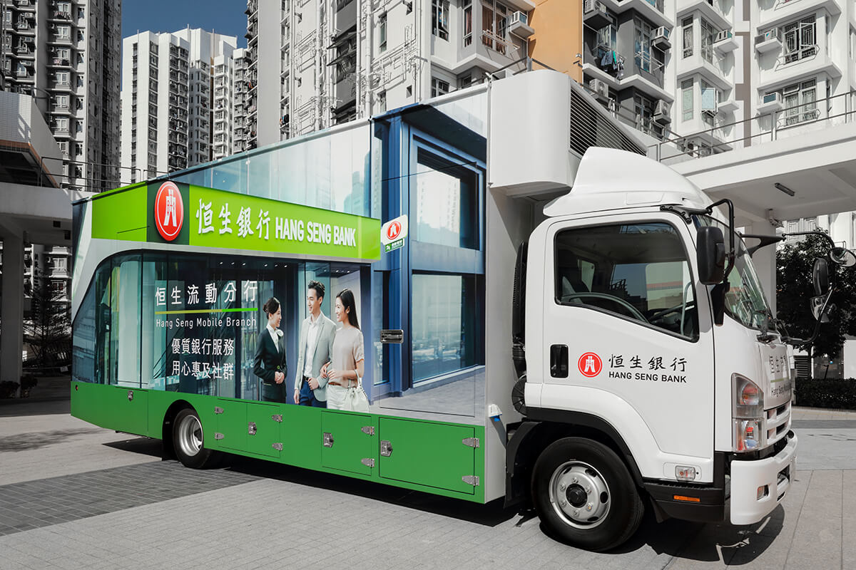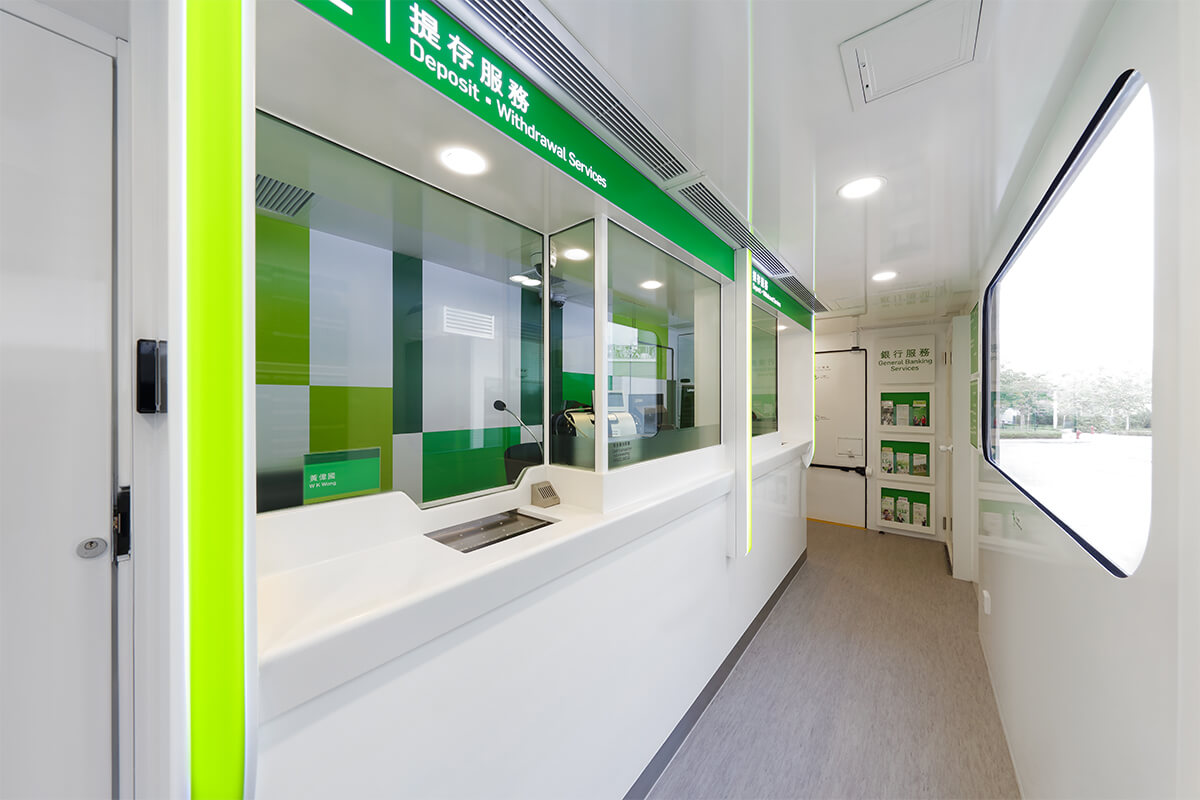 Commissioned by Hang Seng Bank, we provided a practical solution from concept to production to establish their mobile branch — an air-conditioned wheelchair-accessible truck of traditional service counters with a quality electrical system that supports reliable day-to-day operations. Following the brand’s identity, the truck adopted the iconic corporate green as the dominant colour allowing customers to recognise the bank at a distance. Furthermore, the mobile branch is installed with a wheelchair lift to serve customers of all ages and needs.