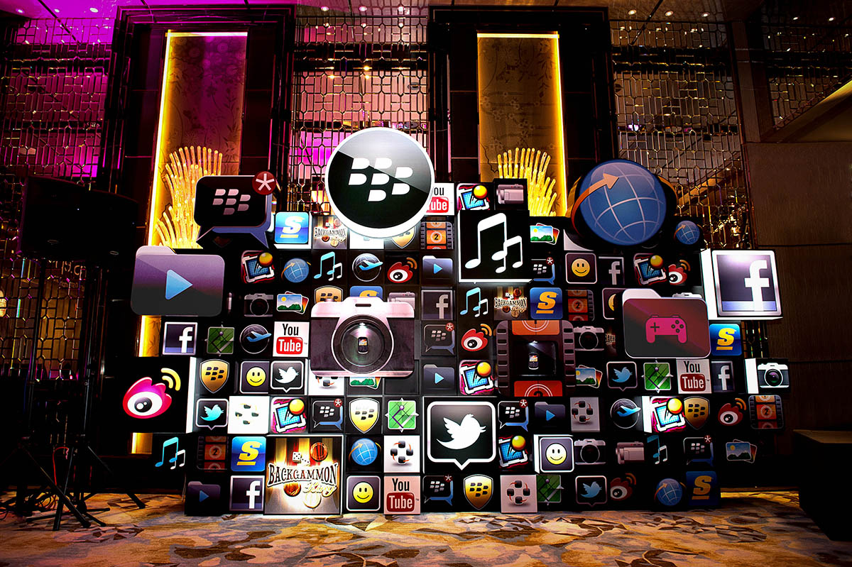 Four mini-booths were set up in the venue, each devoting to one of the four innovative features of the new model. The first is a large panel showing icons of the multitude of entertainment apps offered by the new phone. A large prop of a baggage conveyer belt hanging from the ceiling highlights the product’s unique apps to free frequent-travellers from the hassles caused flight schedule changes. Stacks of junked obsolete computer models accentuated the phone’s various business and word processing apps which made the use of computers redundant. A last one showcased many photos attached to poles of people from all walks of life to show how the phone’s state-of-the-art messaging feature help users stay in touch wherever they are and whatever they are doing.