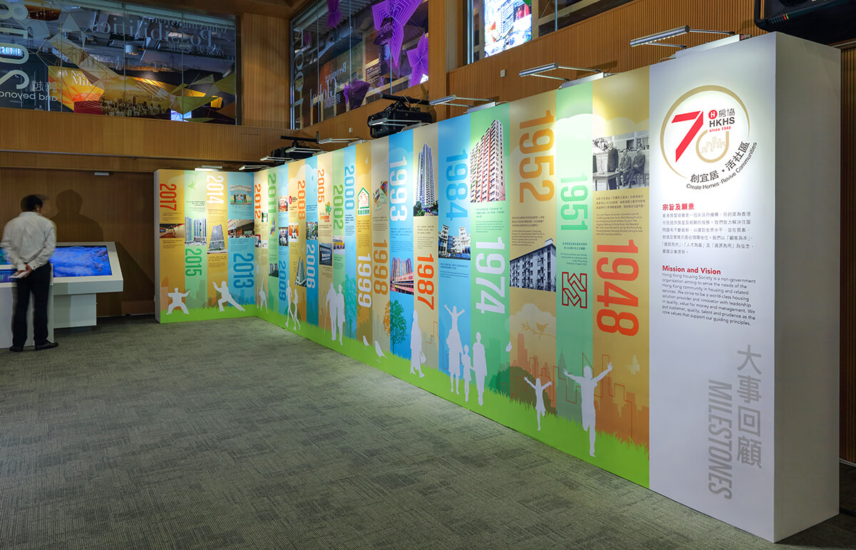 Celebrating the 70th Anniversary of the Hong Kong Housing Society (HKHS), this informative roving exhibition provided different facets of housing problems in Hong Kong from 1948 to the present along with the history of HKHS. In order to provide experiences in first-person, we made a 1:1 model of a classic flat of Sheung Li Uk (the first rental estate by HKHS) showcasing the actual conditions of residents during those early days.