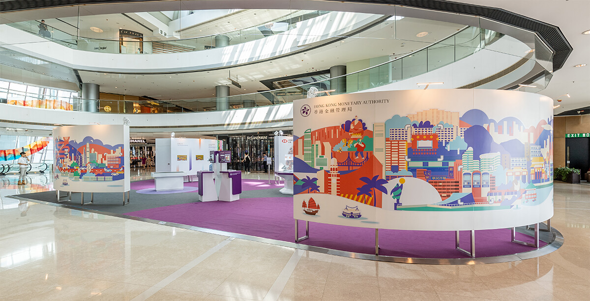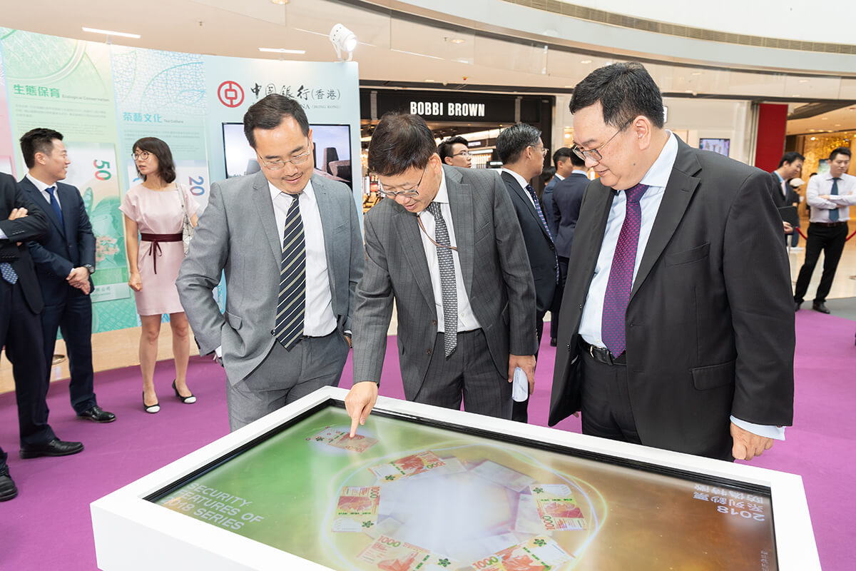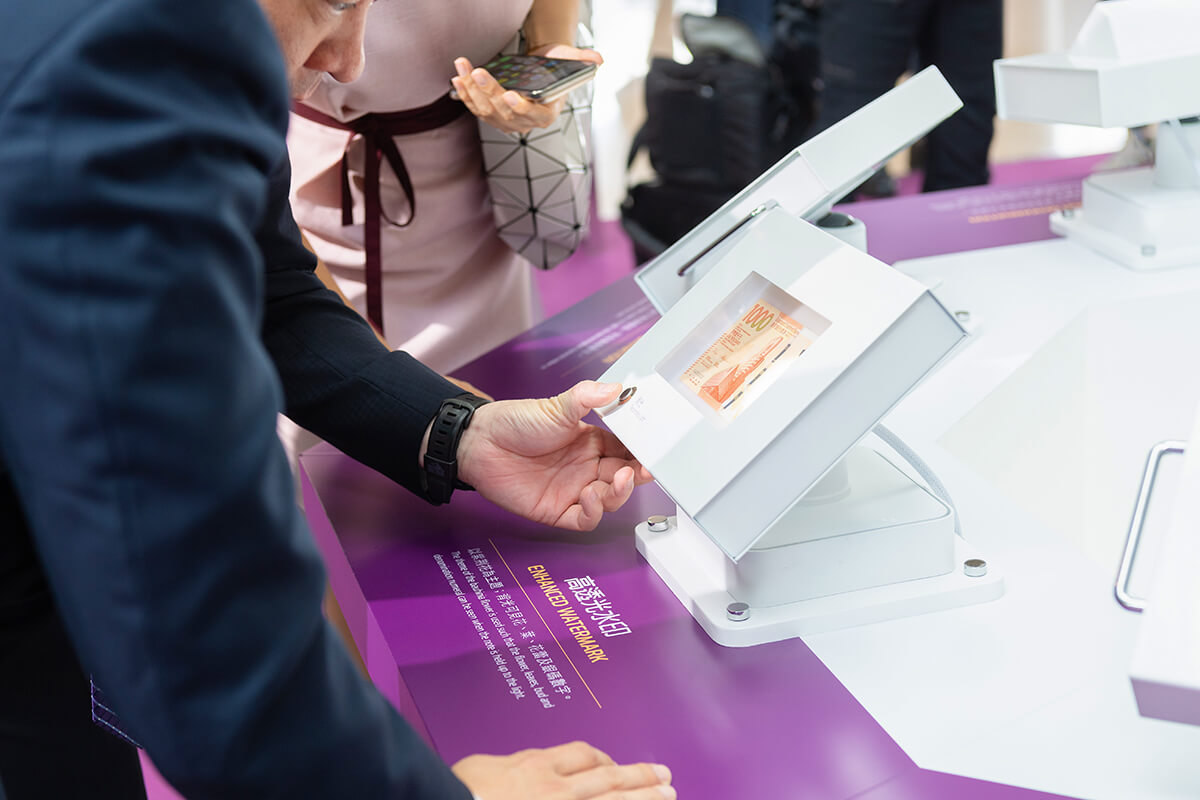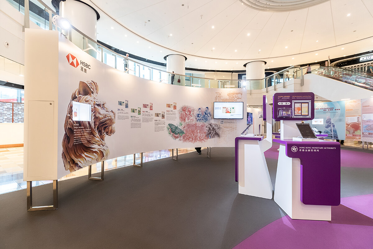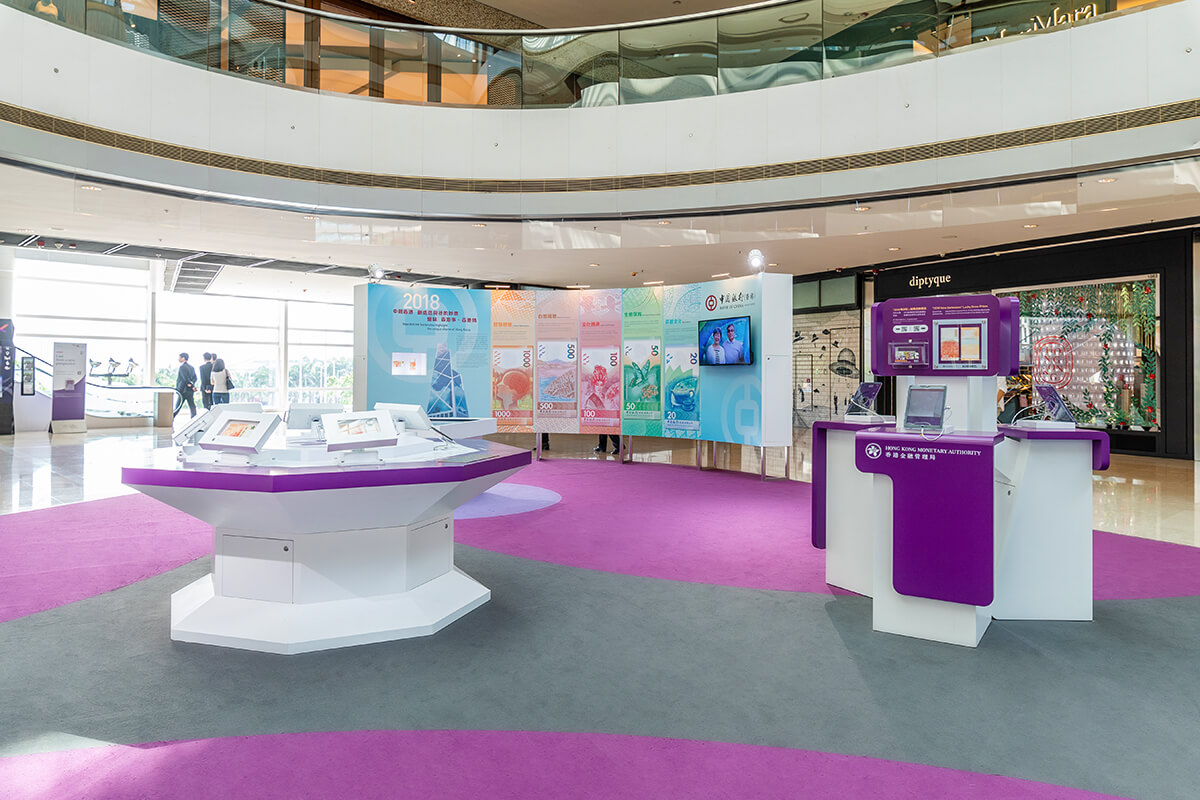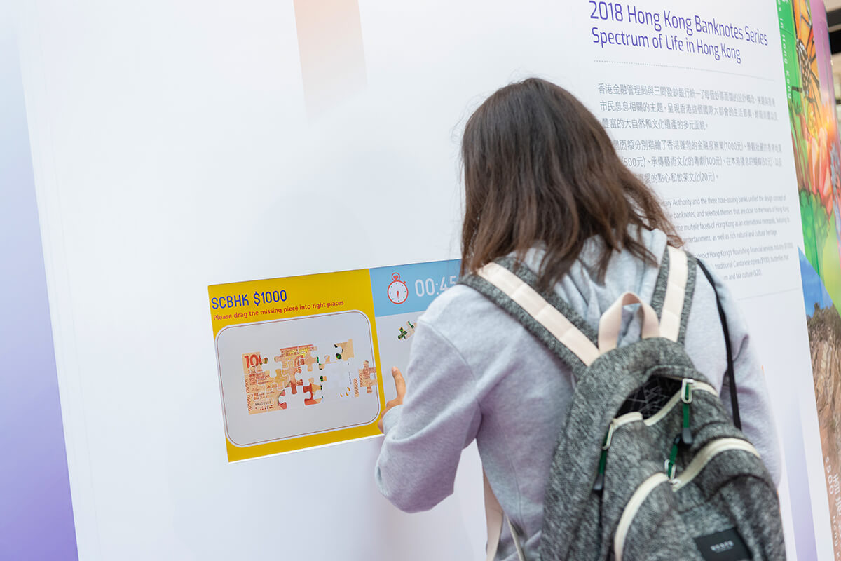 With the objective to introduce the design and security features of the new banknotes to the public, a roving exhibition was staged across the territory starting from 25 July, featuring interactive presentations and videos in addition to information graphics regarding the new banknotes. An interactive table as an integrated information hub, where people could take a closer and clearer look at the security features by enlarging the images of the new banknotes. There were also videos featuring the thematic designs of the new series and the stories behind, as well as an AR Game, which visitors could play by activating it with their smartphones and learn interesting facts about the banknotes.