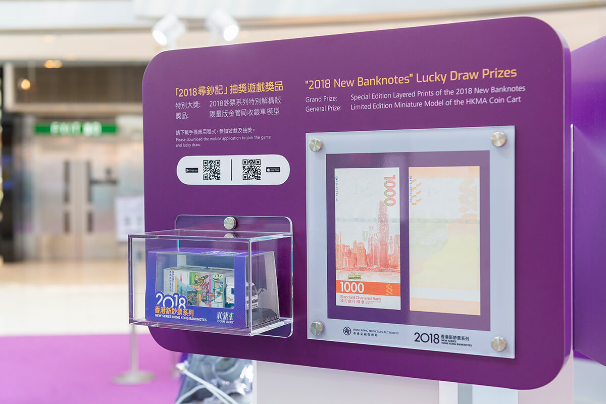 Oval Design had worked with the HKMA for over a year to develop a comprehensive promotion programme in the hope of deepening people’s understanding of the designs and the anti-counterfeiting features of the new banknotes prior to their release in the fourth quarter of 2018. The programme included a launching ceremony, a roving exhibition across Hong Kong and a mobile game app.