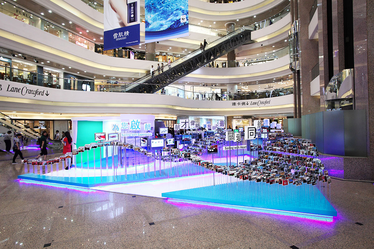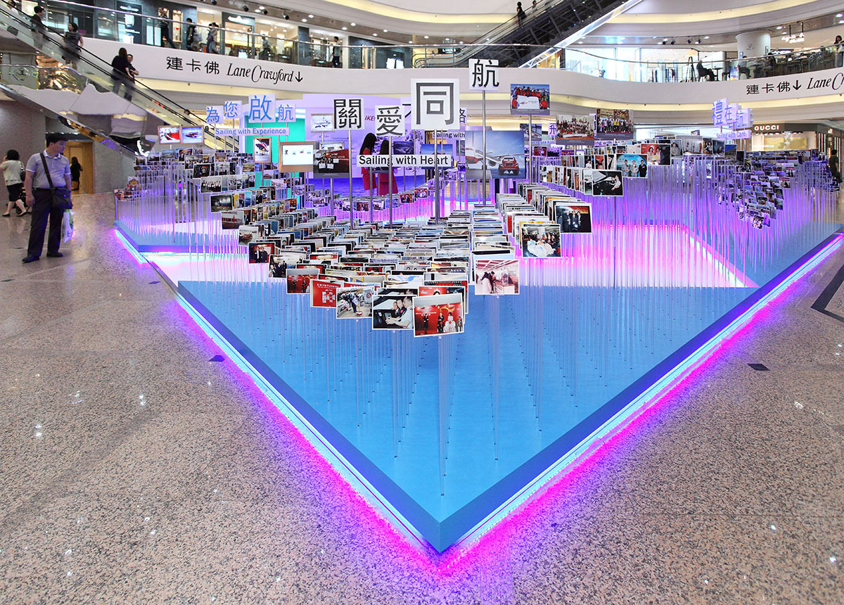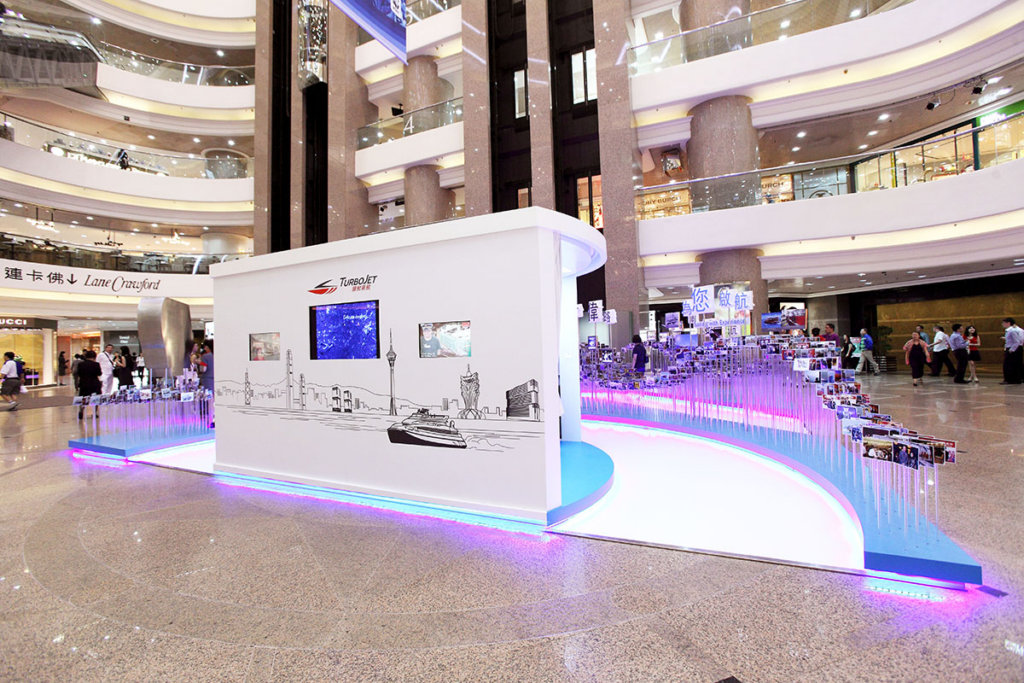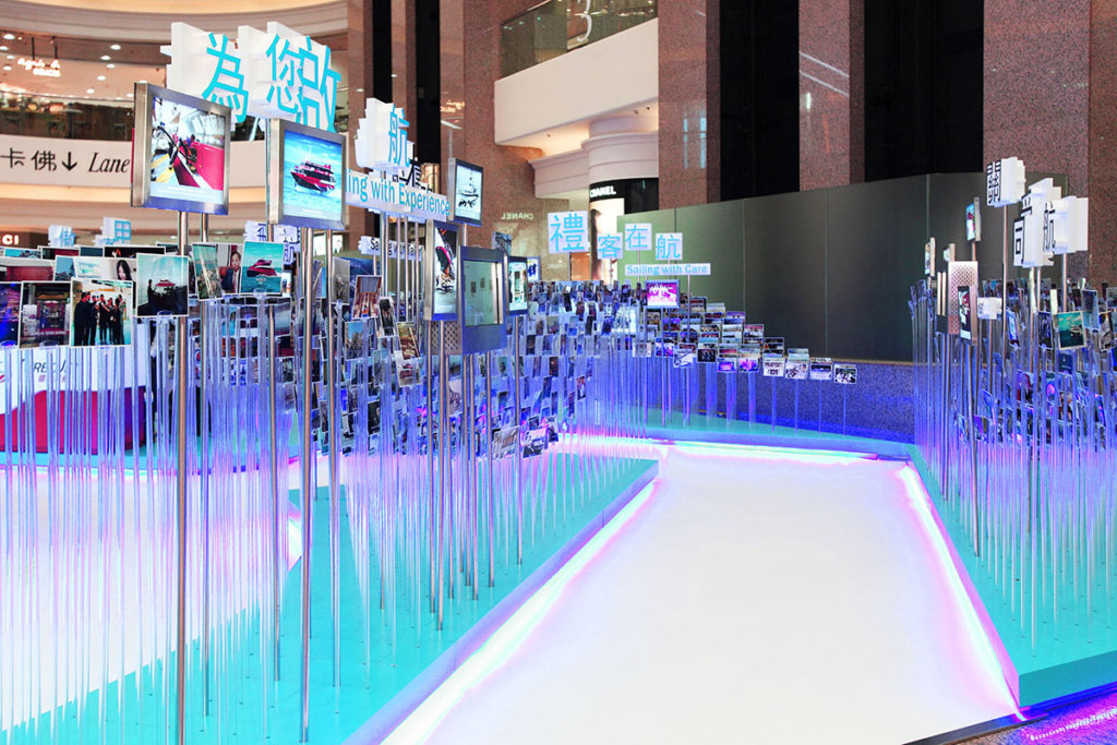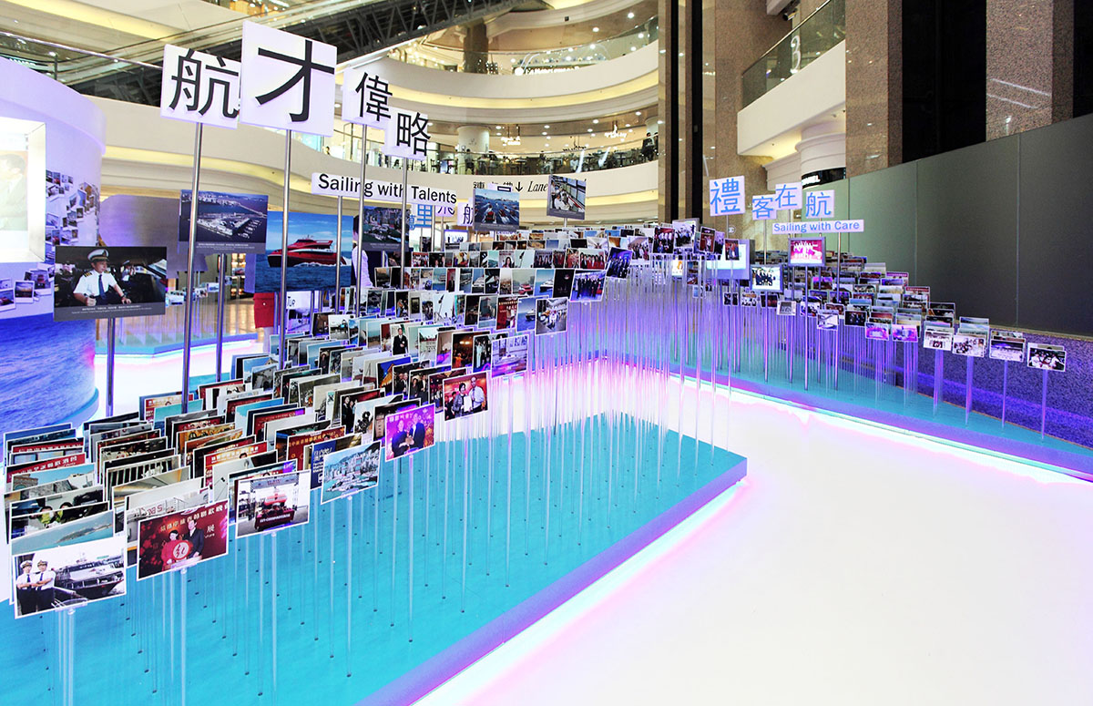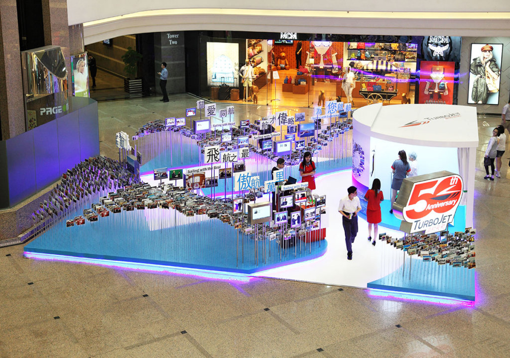 The public submitted photos taken in Hong Kong or Macau to enter a competition via a Facebook page specially set up for the occasion, and in so doing, receive digitally a discount coupon for ferry ticket purchase. The photos thus collected together with the photo archives from Turbo Jet, totaling 5,000, were shown in a wave-like display structure formed by clear acrylic rods. This “sea” of photographic memories also featured a thematic chroma key booth for visitors to take photos with images of vessels at different periods as background and retrieve these photos by entering the Turbo Jet page at Facebook.