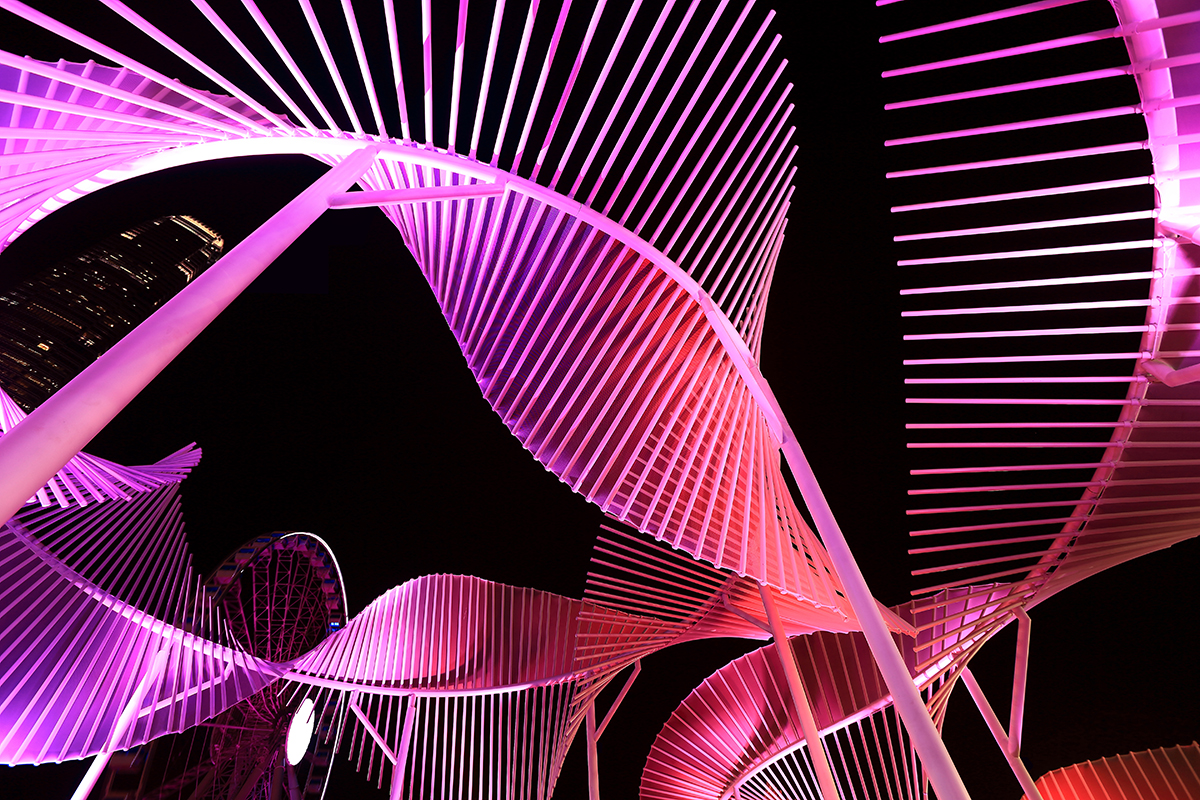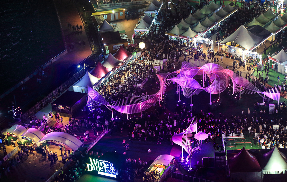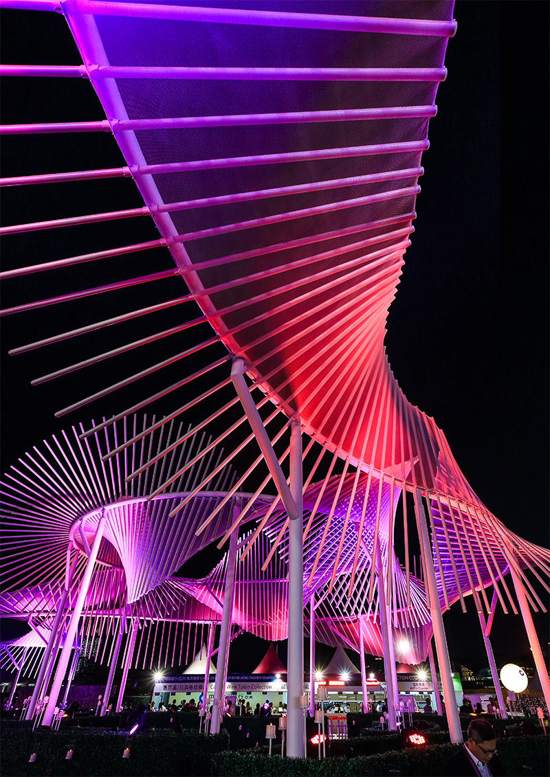 Under special lighting effects, the helix of the waves on sculptures also conceptually signified the genetic inheritance of a modern lifestyle on exercising the freedom of choice on ways of public enjoyment of wining and dining.