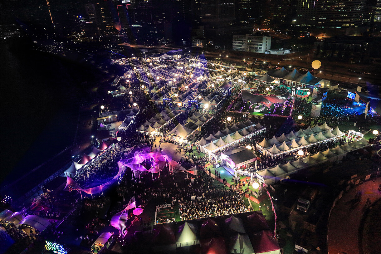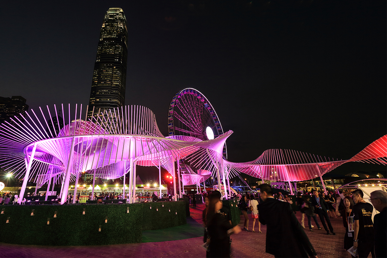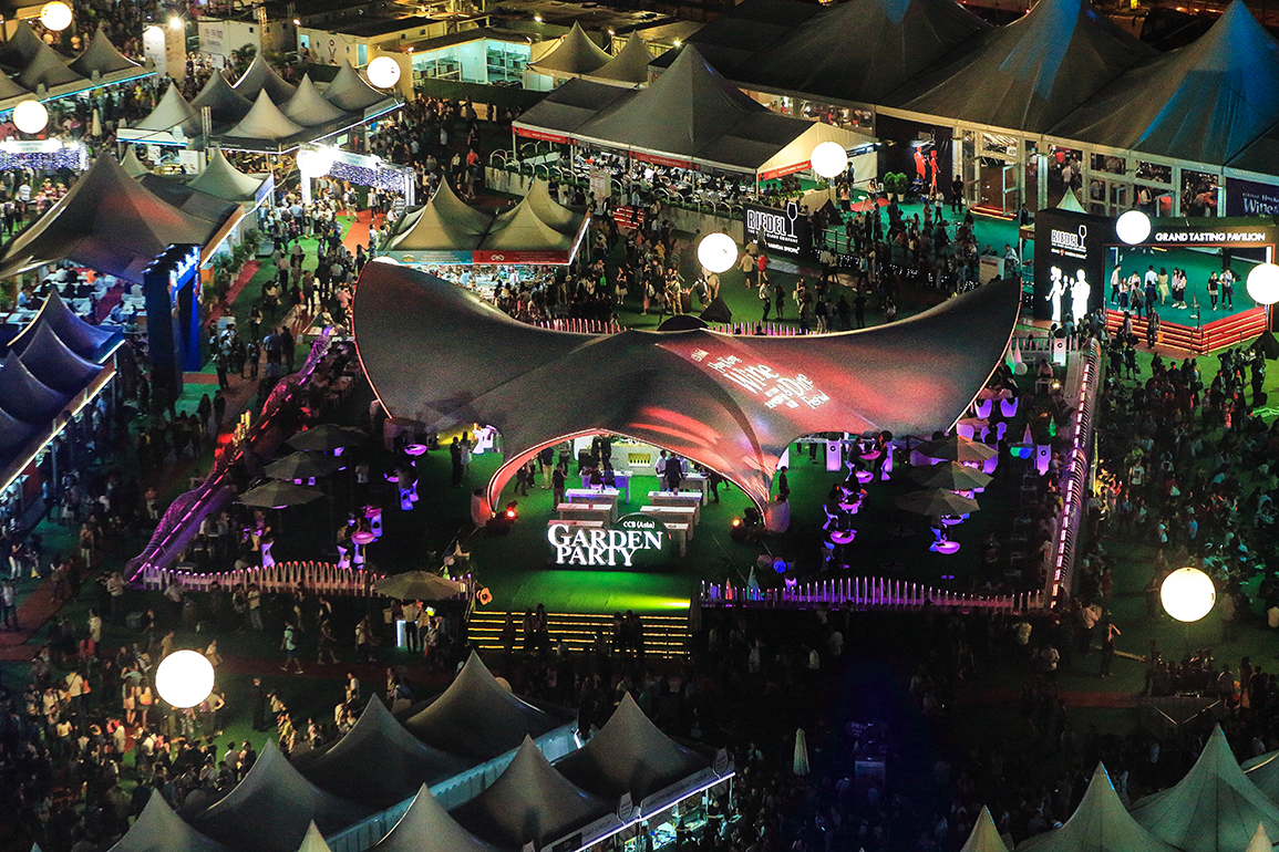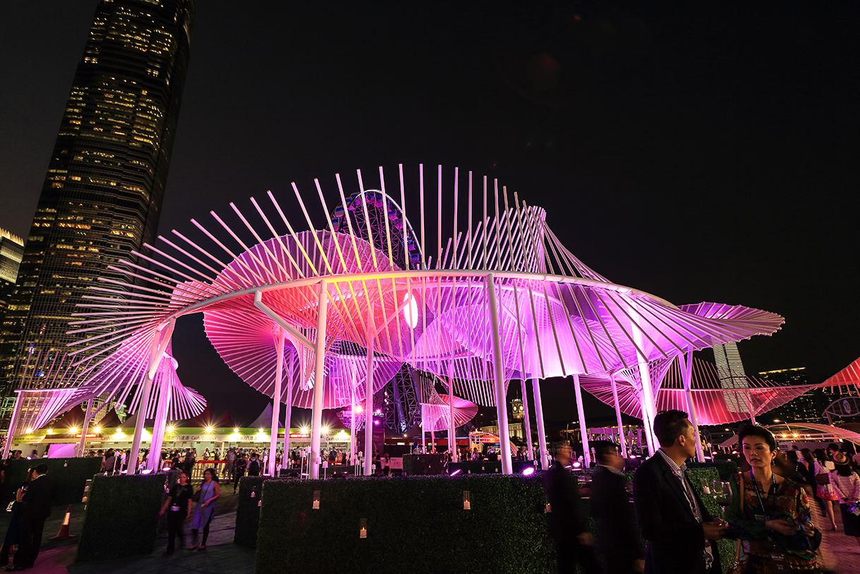 The iconic design for the Garden Party Venue was an immensely massive sculpture, but it looked so light-weighted, with dominant wings flapping along its journey soaring to the sky. Yet, it was rooted firmly on the ground, welcoming anyone to come inside to embark an adventure of indulgence. Lighting effects were cast on the wings to attract the audience afar.