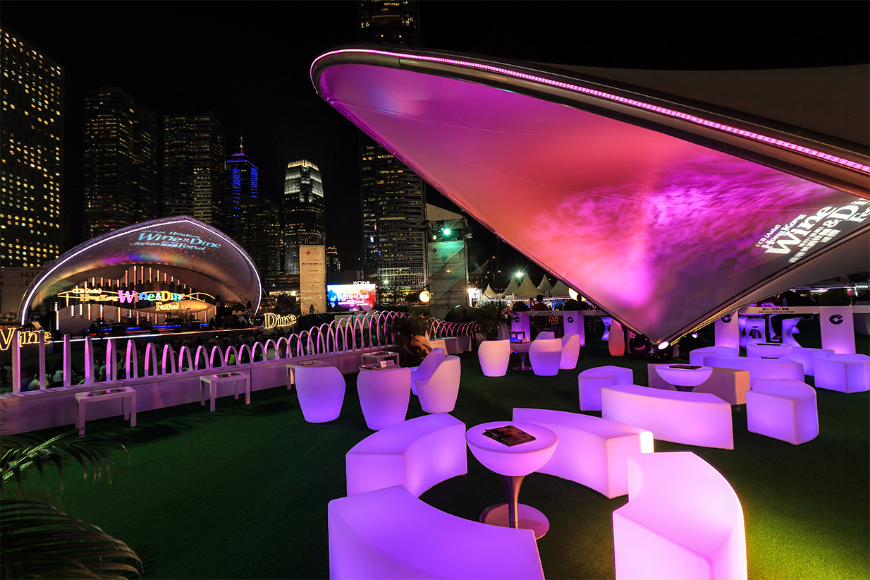 Use luminous furniture and decoration objects inside the “Garden Party” to create a relaxing and clubbing ambiance.