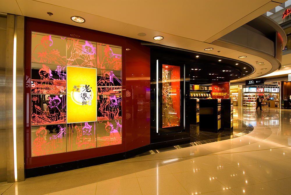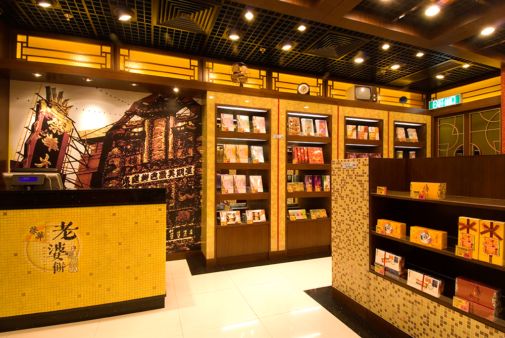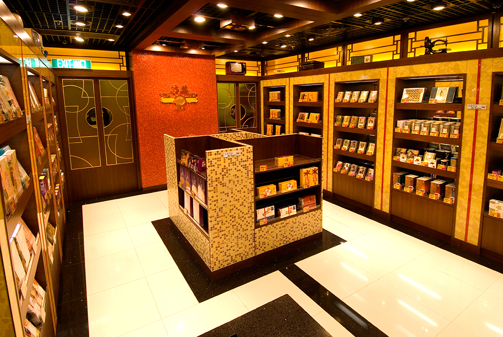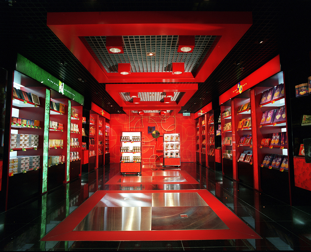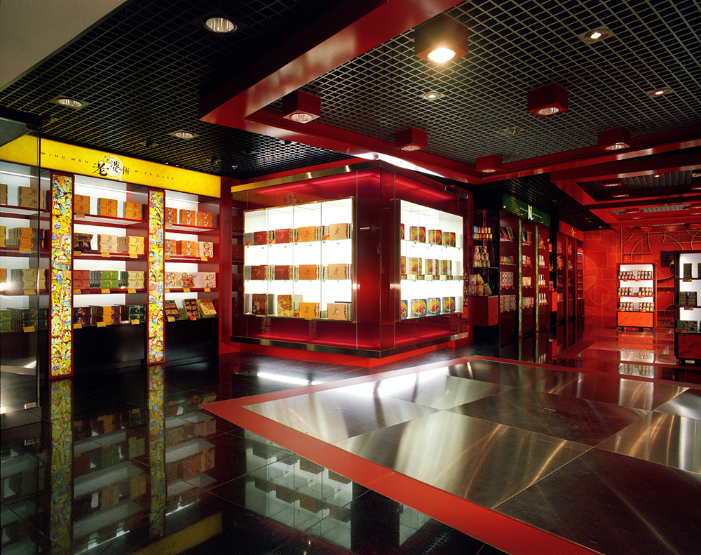 Interiors featuring a refreshingly modern take of the traditional Chinese jewellery box in red and gold colour provided a retail environment perfect for the cakes and nostalgic snacks of the time-honoured brand of Wing Wah.